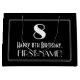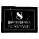 This 1920s-1930s appearance inspired vintage style birthday-themed giftbag design features a large art deco look inspired number "8", the message "Happy 8th Birthday,", a personalised name, and a border pattern consisting of thin lines. It also features a black-coloured background. A gift bag like this might be used when wrapping gifts being given to somebody in celebration of their eighth birthday. [~Z0000496]