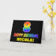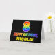 The front of this fun, colourful, and cheerful birthday greeting card design features a large number "8" and the message "HAPPY BIRTHDAY,", both coloured with a rainbow spectrum gradient inspired pattern, along with a bold yellow personalised recipient name. The front also features a minimalist, simple, black coloured background. The inside has a custom birthday greeting message, or could perhaps be cleared and left blank if a message is to be written by hand instead. A cheerful personalised birthday card like this might be a fun way to acknowledge somebody’s eighth birthday. [~Z0000472]