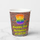 This fun and exciting urban graffiti and street art inspired birthday paper cup design features a large number “8” having a colourful rainbow spectrum gradient inspired pattern. It also features the message “Happy 8th Birthday,”, and an editable name. The background features a brick wall pattern. Colourful, vibrant paper cups like this might be fun to have at a birthday party being held to honour somebody’s eighth birthday. [~Z0000543]