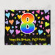 8th Birthday: Fun Hearts Pattern, Rainbow 8 Postcard