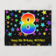 8th Birthday: Fun Stars Pattern, Rainbow 8, Name Postcard