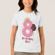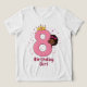 This t-shirt features an adorable design of a smiling girl peeking from behind a big pink number eight topped with a golden crown. The cheerful vibe, vibrant colours, and playful style perfectly capture the joy of turning eight, making it an ideal choice for a birthday celebration she'll cherish forever.