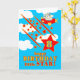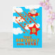 Happy Birthday little star, you're eight-years-old today says this adorable cloud and shooting star with animals flying a plane birthday card for a girl or boy's eighth birthday.