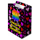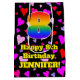 This colourful and cheerful birthday giftbag design features a large number “8” having a rainbow spectrum gradient inspired pattern. It also features the message “Happy 8th Birthday,”, and a customisable name. The background features a pattern of red, pink, and purple heart shapes of various sizes. An upbeat gift bag like this might be used when giving a gift or present in honour of somebody’s 8th birthday. [~Z0000551]