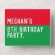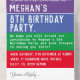 Bright colours and bold design in Stripes. 8th Birthday party invitation all-in-one card. 8th birthday party invitations.