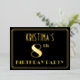 The front of this Roaring Twenties inspired eighth birthday celebration foil invitation features a personalised name, a large art deco style inspired number “8th”, the message “BIRTHDAY PARTY”, and a border pattern consisting of lines. The front also features a black-coloured background by default, but it can be customised to a different colour if desired. The back features personalised details about the event, such as the date, time, venue, and any other information that may be important. Elegant, luxurious, editable invitations like these might be used to invite guests to a birthday party being held in celebration of somebody’s 8th birthday. [~Z0000591]
