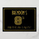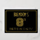 The front of this 1920s-1930s style inspired and vintage-appearance eighth birthday celebration/party foil invitation features a personalised name, a large art deco style inspired number “8TH”, the message “BIRTHDAY PARTY!”, and a border pattern consisting of lines. The front also features a black-coloured background by default, but it can be customised to a different colour if desired. The back features personalised details about the event, such as the date, time, location, and any other relevant information. Luxurious, elegant, editable invitations like these might be used to invite guests to a birthday party being held to celebrate somebody’s 8th birthday. [~Z0000590]