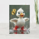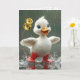 A cheerful white duckling wearing red rain boots splashes joyfully in puddles while holding a shiny gold "8" balloon for 8th birthday.