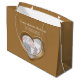 Customised 8th bronze wedding anniversary large gift bag personalise with your own special photo, year of marriage and words. Bronze metal heart effect art and design by Sarah Trett for www.mylittleeden.com