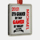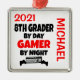 This custom ornament featuring the quote "8th Grader by Day Gamer by Night" is perfect for any eighth grader that loves playing video games.