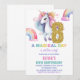 8th Rainbow Unicorn Birthday Invitations Glitter