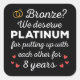 'Bronze? We deserve Platinum for putting up with each other for 8 Years' quote for a couple who got married 8 years ago or a couple renewing wedding vows on their bronze anniversary.