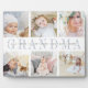 Create a sweet gift for grandma with this six photo collage plaque. "GRANDMA" appears in the centre in chic grey lettering, with your custom message and grandchildren's names overlaid.