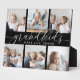 Create a sweet gift for a beloved grandma or grandpa with this beautiful 8x10 photo collage plaque. "Grandkids make life grand" appears in the centre in white calligraphy lettering on a black background. Customise with 6 photos of their grandchildren.
