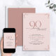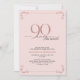 This beautiful invitation features hand lettered calligraphy artfully presenting 'ninety' in luxurious hand lettering against a blush pink background, adorned with delicate pink swirls in the corners top and bottom. This image will have all your guests excitedly anticipating your fabulous ninetieth festivities!