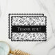 A cool way to say thank you to your guests at your 90th birthday party. There is a text template for the "Thank you" on front which makes it easy to change the text to your own words, name, initial, or monogram. The background is a black and white number pattern with the 90 repeated and scattered in random sizes and angles. There is a black scalloped frame on the front and back. The back is lined for your hand-written message. Not just for your "Big 9-0" birthday; the design is suitable for all occasions or events celebrating the number ninety.