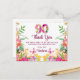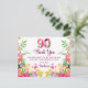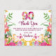 Thank guests with this vibrant floral 90th birthday thank you postcard. Featuring a bold floral "90," colourful blossoms, and butterflies, it’s a charming way to express gratitude. Customisable text adds a personal touch to your celebration. Enjoy!