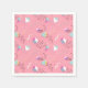 Fun paper party napkins pattern features 1990s style of abstract geometric shapes and squiggles in the decade's hottest colours -- all on a pink background.