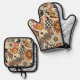 90s Happy Faces Sun Flowers Pattern Oven Mitt & Pot Holder Set