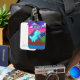 90s Pixel Gamer Pixelated- Dinosaur Illustration Single-sided w/ Card Slot Luggage Tag; This funny nostalgic design features pixel art of a Dinosaur in nature. There is mountains, fir trees, and clouds in colorful sky. In front pixelated font "START" for beginning of the game, I've used a pop color palette, to give the art a 90s Video Games Aesthetic.