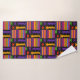 This super colorful towel set design will brighten your bathroom. It combines an African Kente inspired design with a vivid 1990's color palette. Get this design on a shower curtain and bath mat for an affordable bathroom makeover!