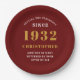 90th Birthday 1932 Red Gold Love Name Year Paper Plate