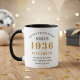 Personalized birthday mug for those born in 1936. Easily customize the text to the front and the interior of this birthday coffee mug using the template provided. Part of the setting standards range of designs.