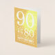 This humourous 90th birthday card features the words "90 is the new 80 Happy Birthday" in white against gold foil.