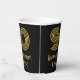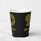 This 1920s-1930s style inspired and vintage look birthday themed paper cup design features a large art deco inspired appearance number “90”, plus the birthday greeting message “Happy 90th Birthday,” and a personalised name. The background is coloured black. Paper cups like this might be used at a birthday party for somebody who is celebrating their 90th birthday. [~Z0000546]