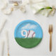 A white baseball in green grass, blue sky, and clouds for a 90th birthday.