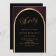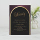 An elegant 90th birthday invitation. A black and burgundy background with a golden arch on the front.