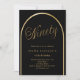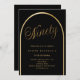 An elegant 90th birthday invitation. A black background with a golden arch on the front.