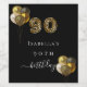 For an elegant 90th birthday party. A black background, decorated with balloons. Number 80 is written with a trendy balloon style font, leopard pattern. Personalise and add a name and a date. The word birthday is written with a modern hand lettered style script with swashes.