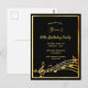 90th birthday black gold music notes invitation postcard