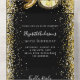 A black background, decorated with golden confetti and a large number 90 in faux gold. Personalise and add a photo, name, party details, RSVP date, return address and name.