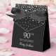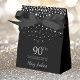This fabulous modern 90th Birthday Black Sparkly Thank You favour box with glittering diamonds sprinkling down, the birthday girl's name in a trendy script font, and tied with an elegant black bow would be perfect for your event. It would be great for a candy station, on a thank you gift table, or at each place setting with a favour. Be sure you order enough for all your guests.
