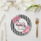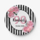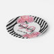 90th birthday black stripes pink florals classic paper plate