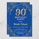 90th Birthday Blue and Gold Glitter Frame Invitation