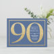 90th Birthday Blue and Gold Glitter Invitation