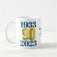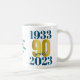 A bold and striking 90th birthday (or any age) mug. This special milestone birthday mug consists of birth and birthday date in blue typography - with the 90 highlighted in a gold effect font. Add a message for a custom gift.