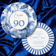 A blue and white stripe with a blue floral elegant 90th Birthday invitation --- the age can be changed for any age.