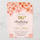 90th Birthday Blush Pink Gold Floral Dinner Party Invitation
