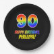 90th Birthday: Bold, Fun, Simple, Rainbow 90 Paper Plate