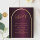 An elegant 90th birthday invitation. A burgundy background with a golden arch on the front.