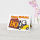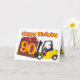 A forklift holds a parcel with the age on it in bright yellow letters. A cheery and funny birthday card for a man.