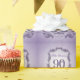 Design in the style of coat of arms in purple colours with large 90th + "BIRTHDAY CELEBRATION" onto a ribbon. Design on wrapping paper with name. You can easily change name (colour, font, size and position) by clicking the customise button. Available with design for 60th,70th, 80th, 95th birthday. Matching party paper napkin and plate, birthday invitation, birthday Save the Date, birthday guest book (spiral notebook), favour box, gift tag, pillow, mug and other birthday gifts for grandmothers.