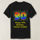 This fun, vibrant, and colourful birthday shirt design features a large number "90" with a rainbow spectrum gradient inspired pattern, along with the message "Happy 90th Birthday,", and a personalised name. A fun, colourful pattern of various music notes and music symbols appears behind the rainbow-coloured birthday number. Shirts like this might be worn by the attendees at a birthday celebration being held to honour a musician’s, a singer’s, a song composer’s, or somebody else’s 90th birthday. [~Z0000428]