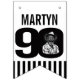 90th black on white add your own three photos birthday bunting flags. Personalise with your own honouring name and three photos in the 0 of 90. Uniquely design by www.mylittleeden.com