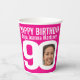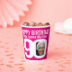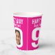 Personalise these bright hot pink and white 90th birthday party paper cups with your own birthday name and two photograph in the 0 of 90. Fun text and personalised photo design. Ideal for using at a ninetieth birthday party to show a photo of your birthday girls photos one now and one from their past. Other matching items are available. © Original graphic art and design by www.mylittleeden.com