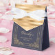 Thank birthday party guests with these elegant favour boxes, featuring an ornate rectangular faux gold frame on a dark navy blue background, with a faux gold foil and satin striped back and flap. Personalise them with the guest of honour's name in gold coloured script, along with the occasion and date in gold copperplate font.